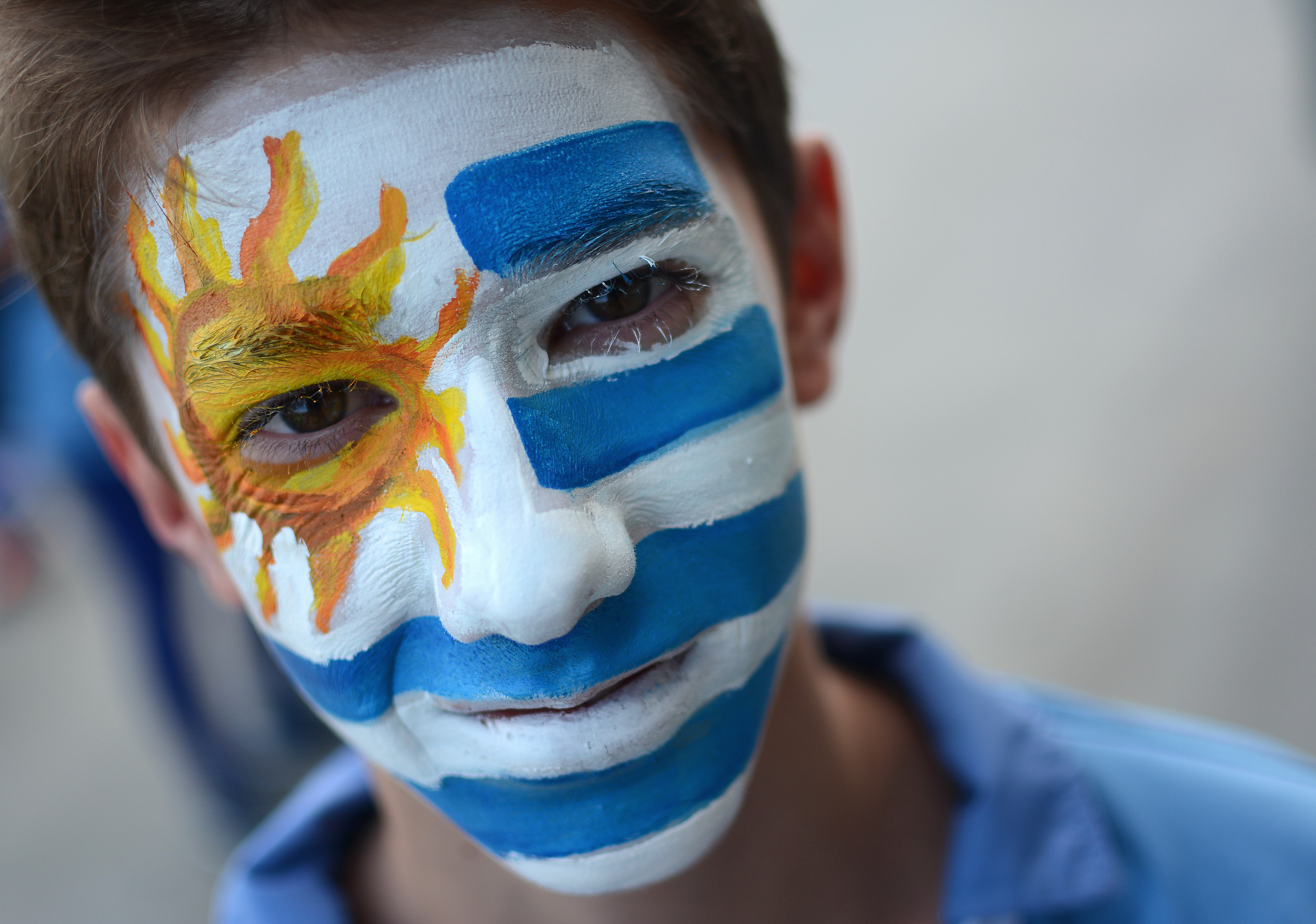 Published July 14, 2014 at 5409 × 3800 in Photo ← Previous Next → An Uruguayan boy painted with colours of his national flag waits for a FIFA World Cup soccer match between Uruguay and Costa Rica at Arena Castelao in Fortaleza, Brazil, Saturday, June 14, 2014.